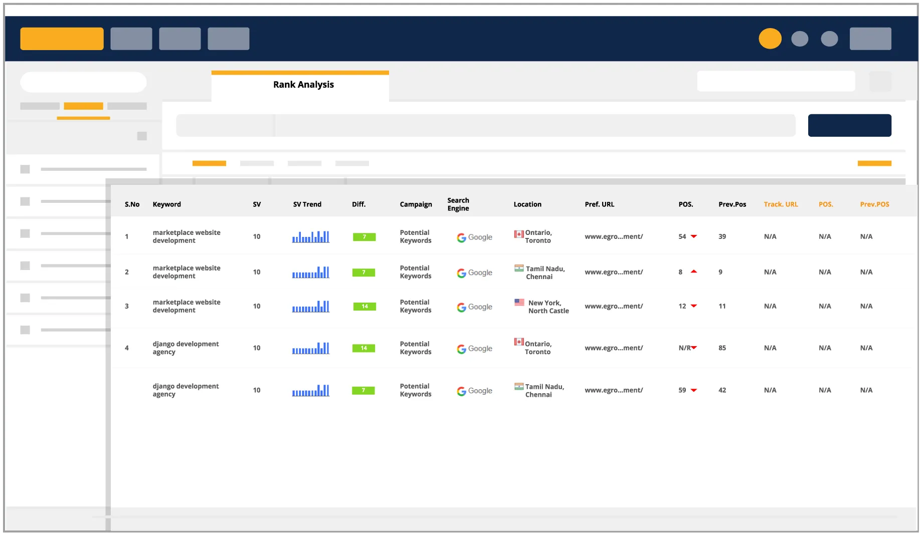 This feature helps site owners understand their web channels and their performance based on chosen keywords, including comparison to competitor sites, page-wise ranking, plus mobile ranking for mobile sites, and Zeroth/featured snippet ranking. The target keywords can be presented in comparison with your competitors’ data in this section.